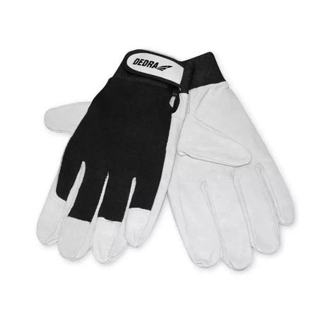 Rękawice wykonane zostały z wytrzymałej licowej świńskiej skóry, przez co zapewniają doskonały chwyt i czucie. Wierzchnia część rękawicy wykonana została ze miękkiego i elastycznego sztruksu, który idealnie dopasowuje się do kształtu dłoni. Rękawice zakończone elastycznym mankietem na rzep, pozwalającym dopasować rękawice do rozmiaru dłoni. Wewnętrzna część rękawicy wykonana została z jednego kawałka skóry, który charakteryzuje się dużą odpornością na ścieranie.