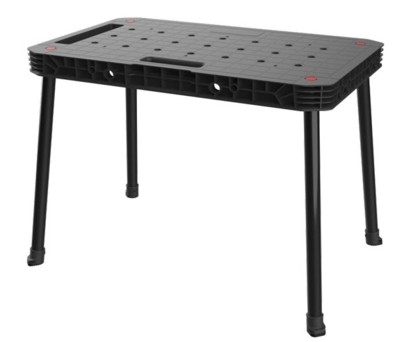 Stół warsztatowy z odczepianymi nogami i perforowaną powierzchnią